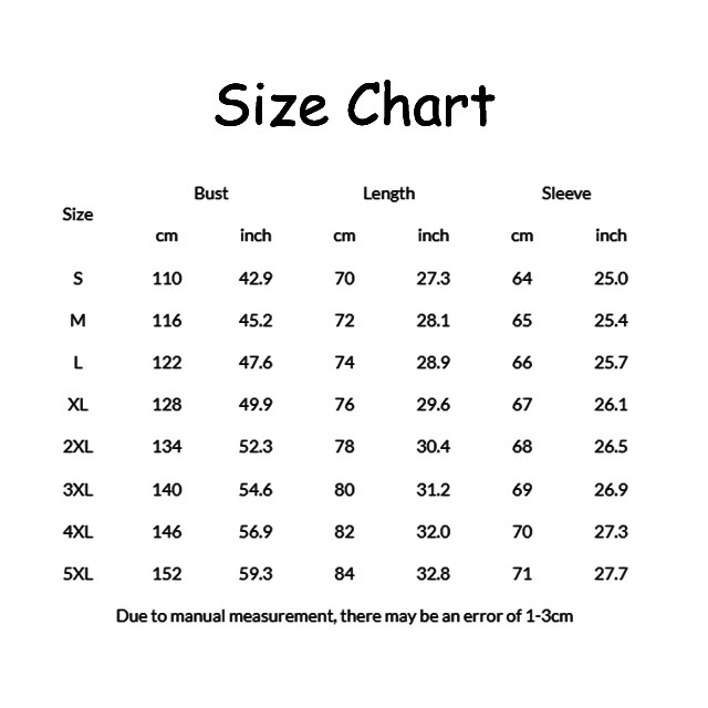 NOTE: If you are not sure, please choose a larger size. If you have any doubts about this product, we suggest you contact our customer service team. Due to the color difference between the screens of different electronic devices (computers, mobile phones or ipads), especially the CRT screen and the LCD screen, the color of the item may be slightly different from what you see in the photos, please take the actual product as the standard.