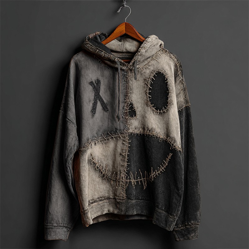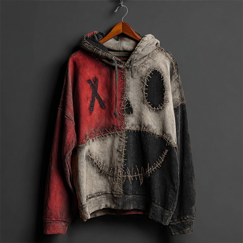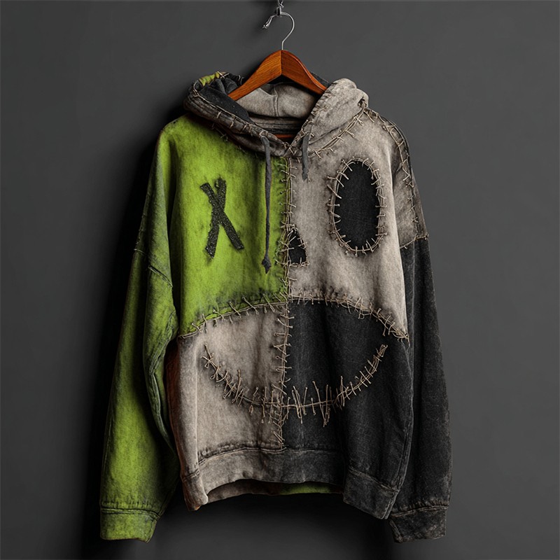 Halloween Pumpkin Face Colorblock Patchwork Hoodie