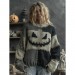 Halloween Pumpkin Face Patchwork Art Cozy Knit Sweater