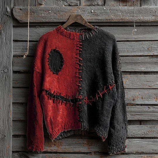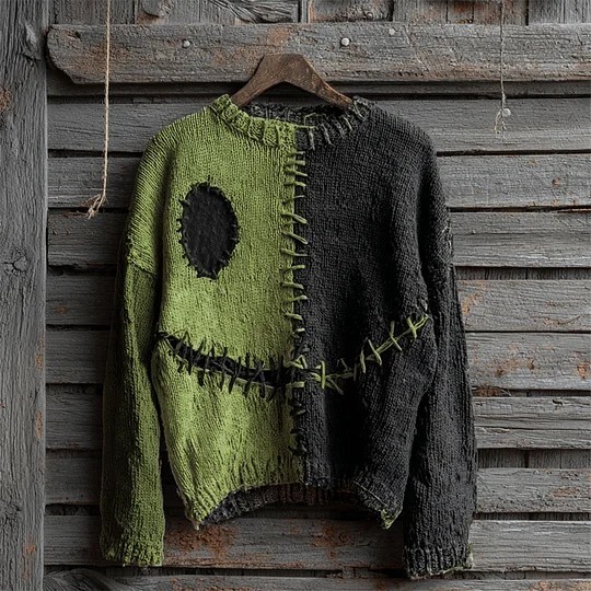 Halloween Spooky Face Contrast Stitched Cozy Knit Sweater