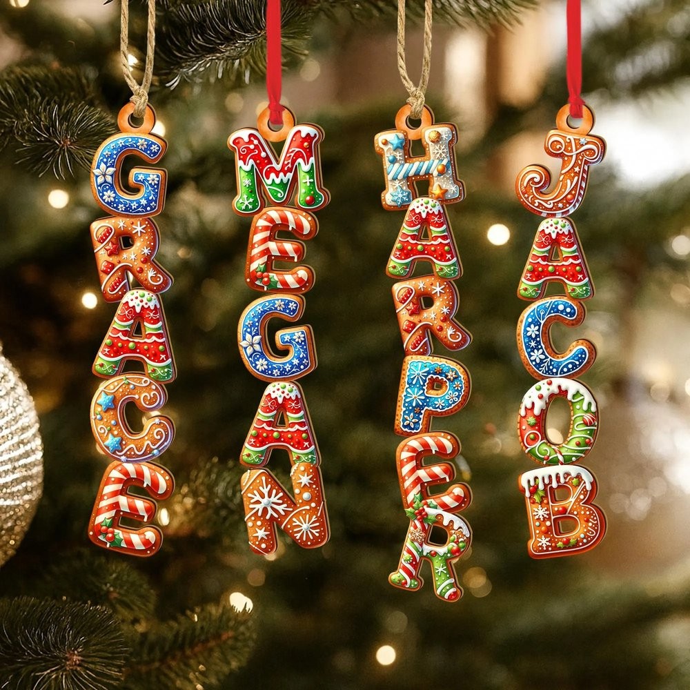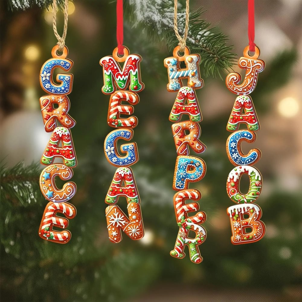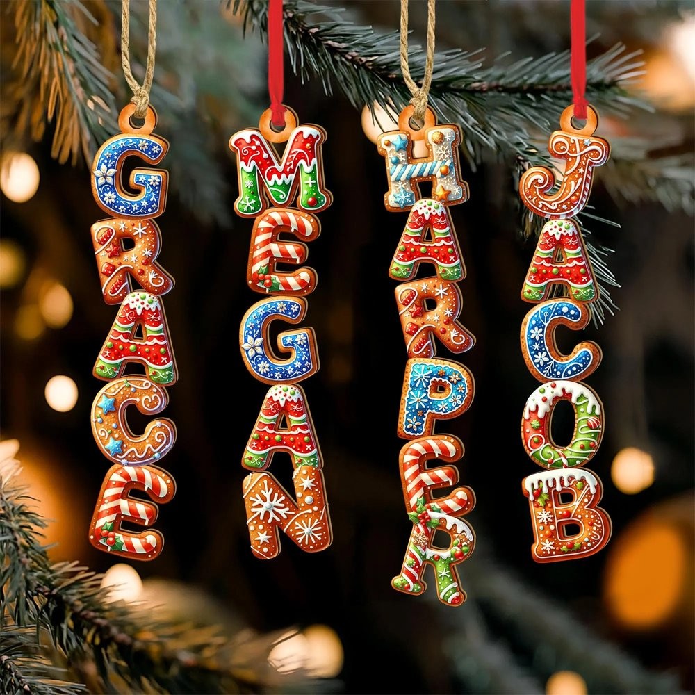 Personalized Gingerbread Alphabet Ornament Kids Name Ornament Christmas Tag for Stockings