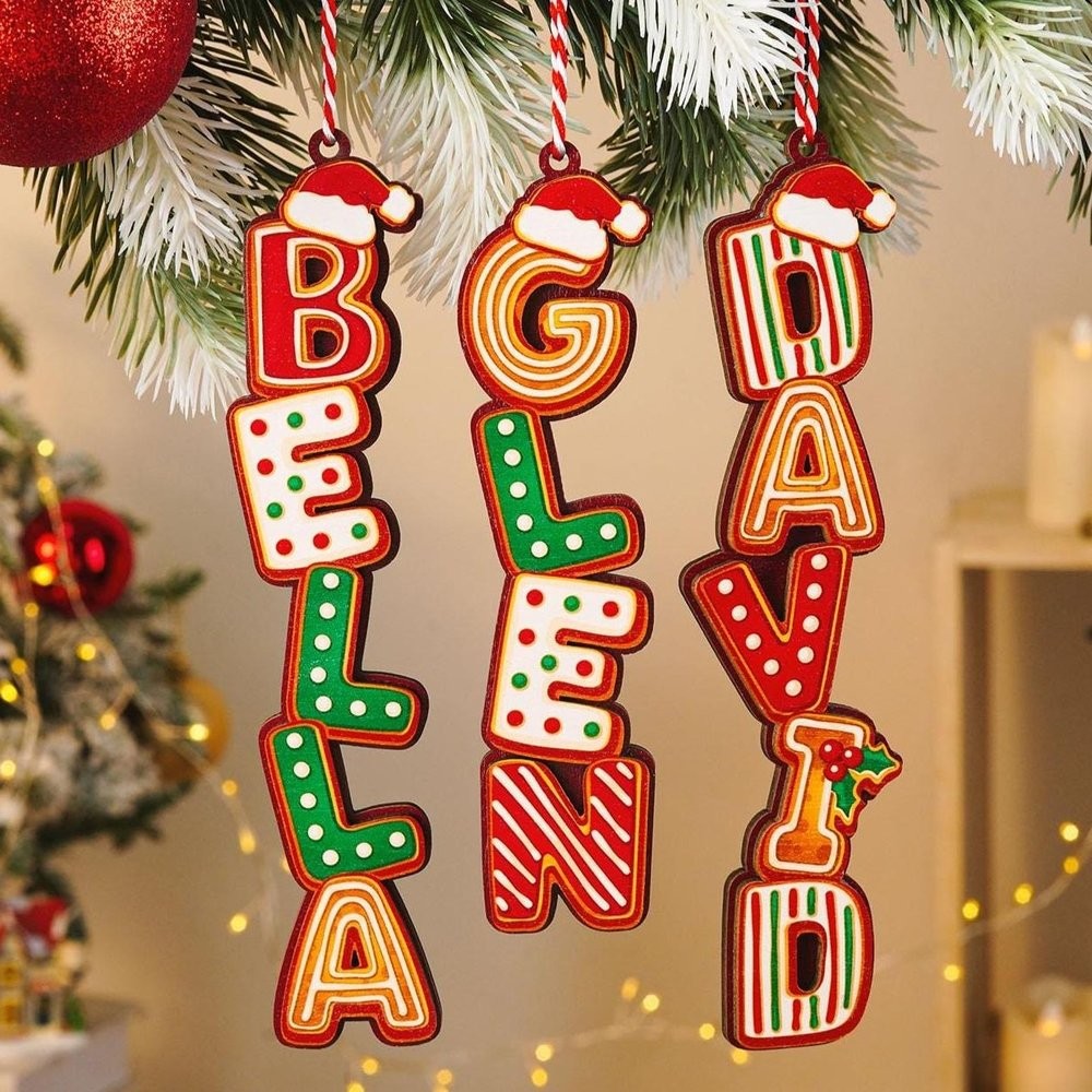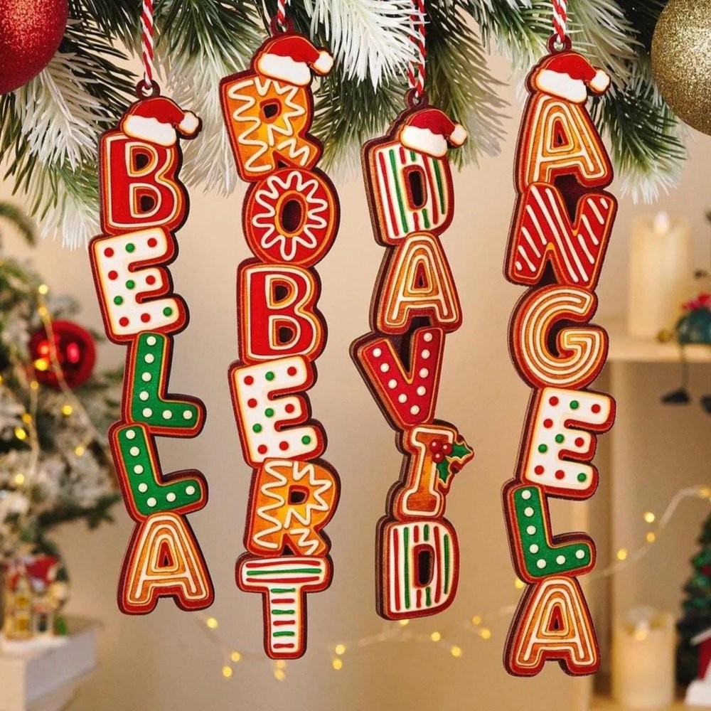 Personalized Gingerbread Alphabet Ornament Kids Name Ornament Christmas Tag for Stockings