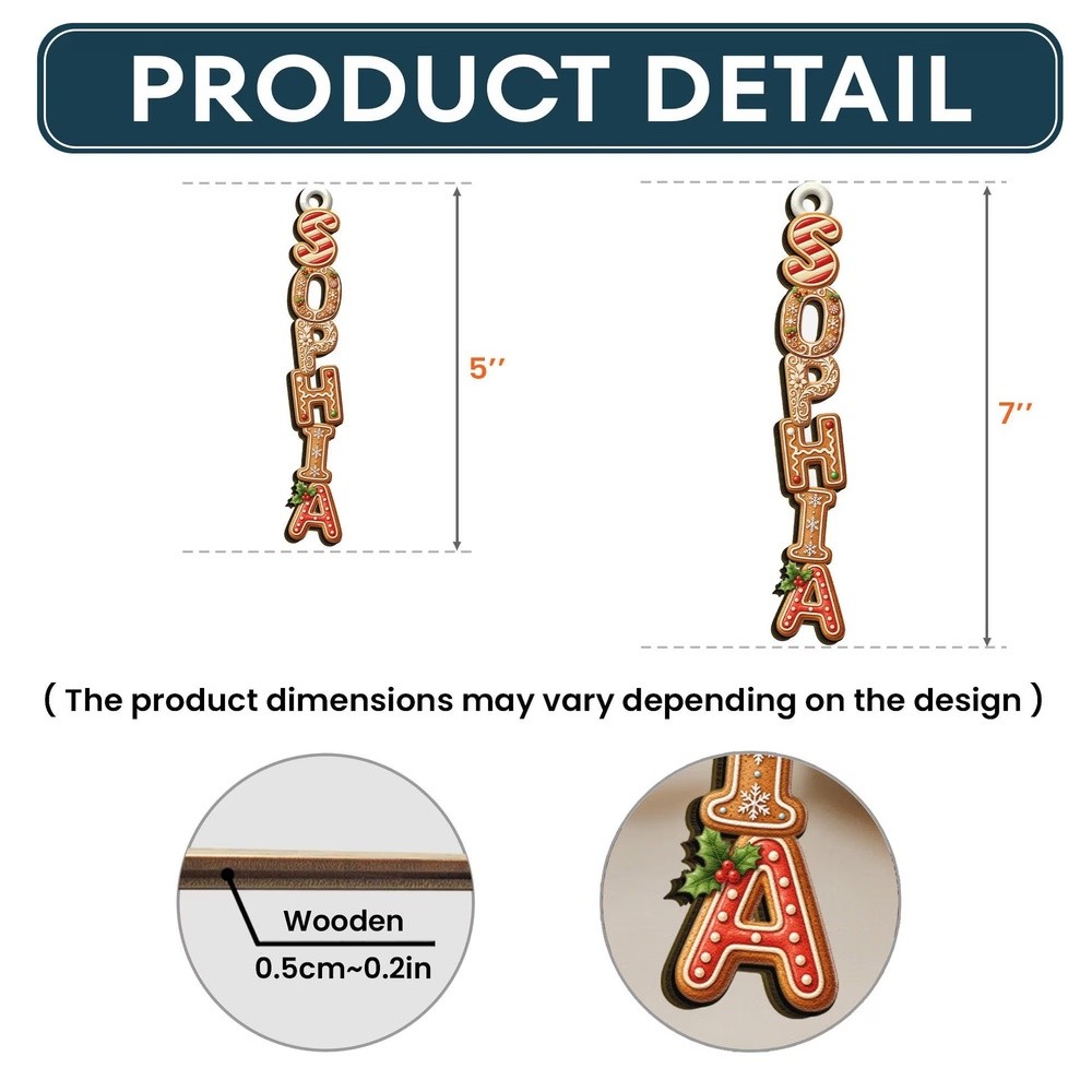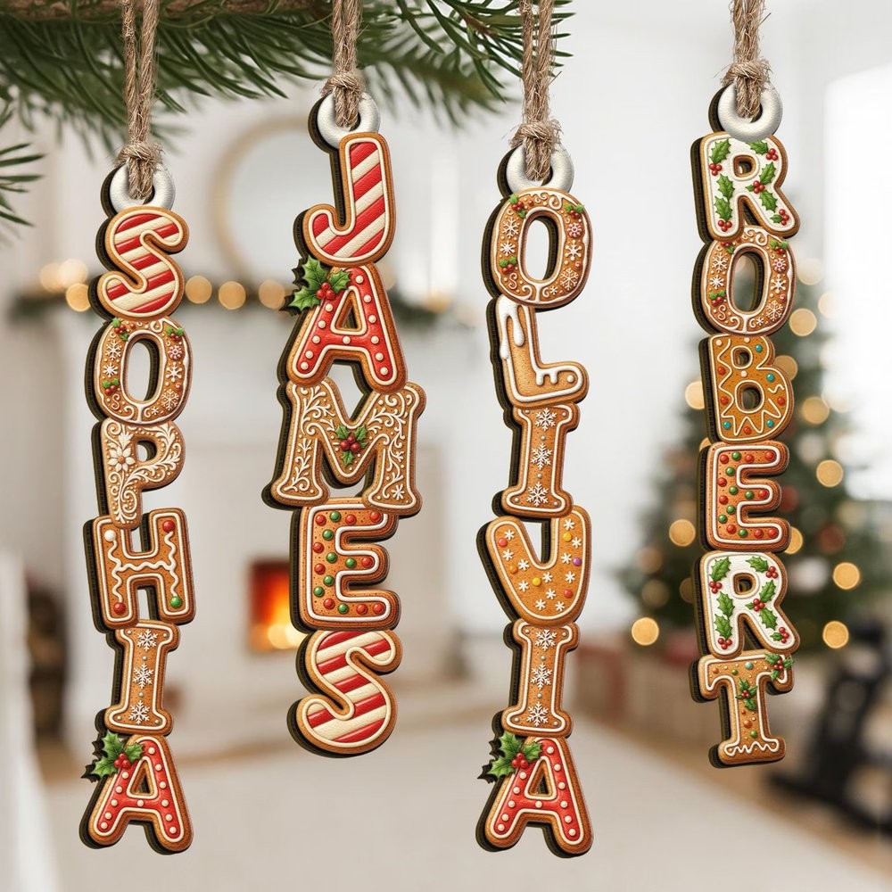 Personalized Gingerbread Alphabet Ornament Kids Name Ornament Christmas Tag for Stockings