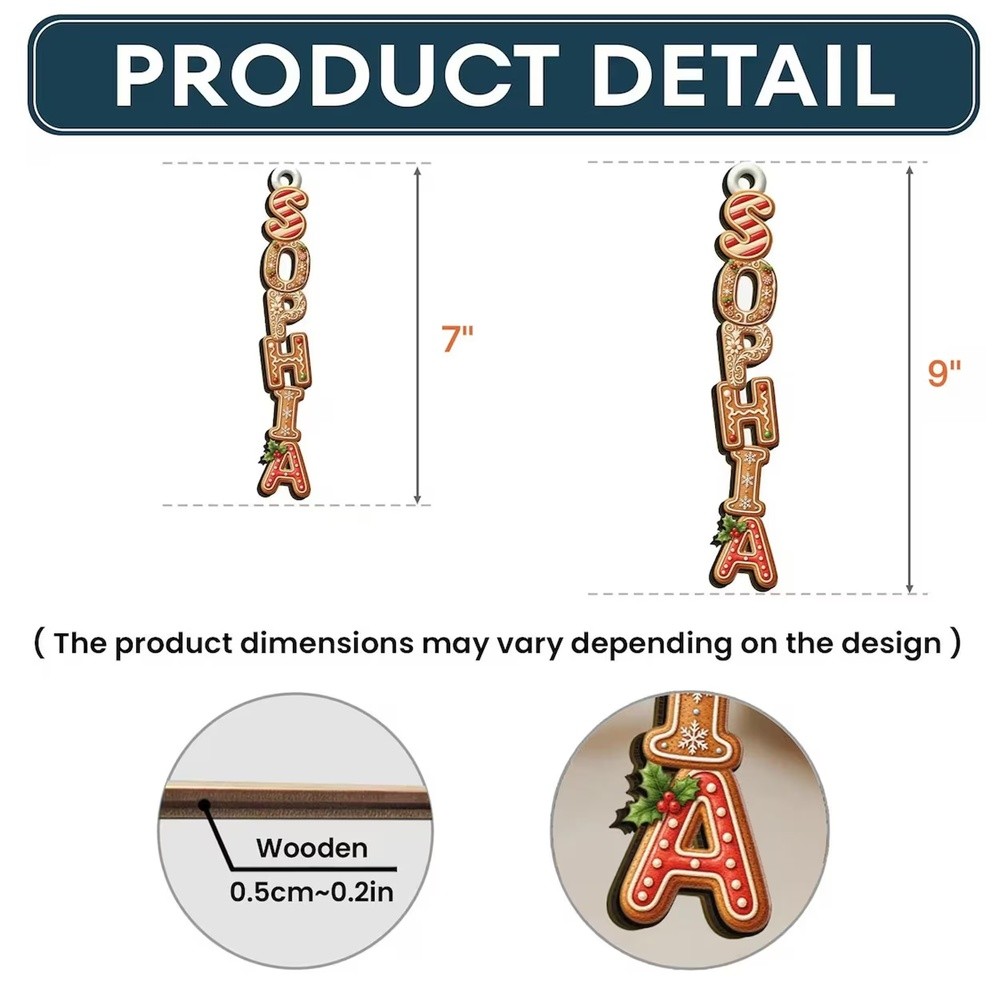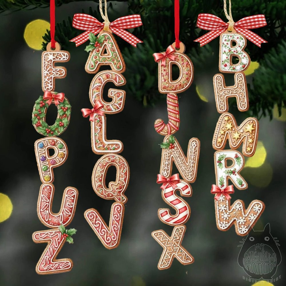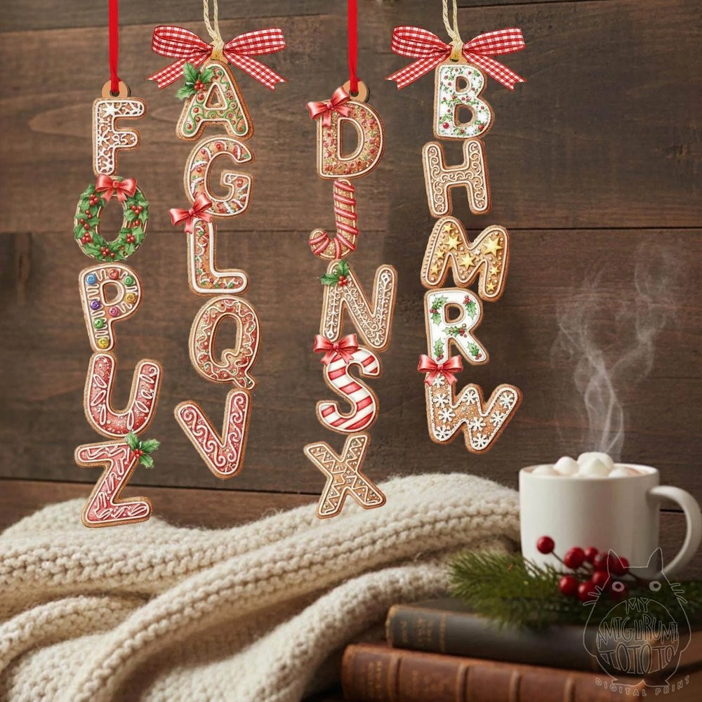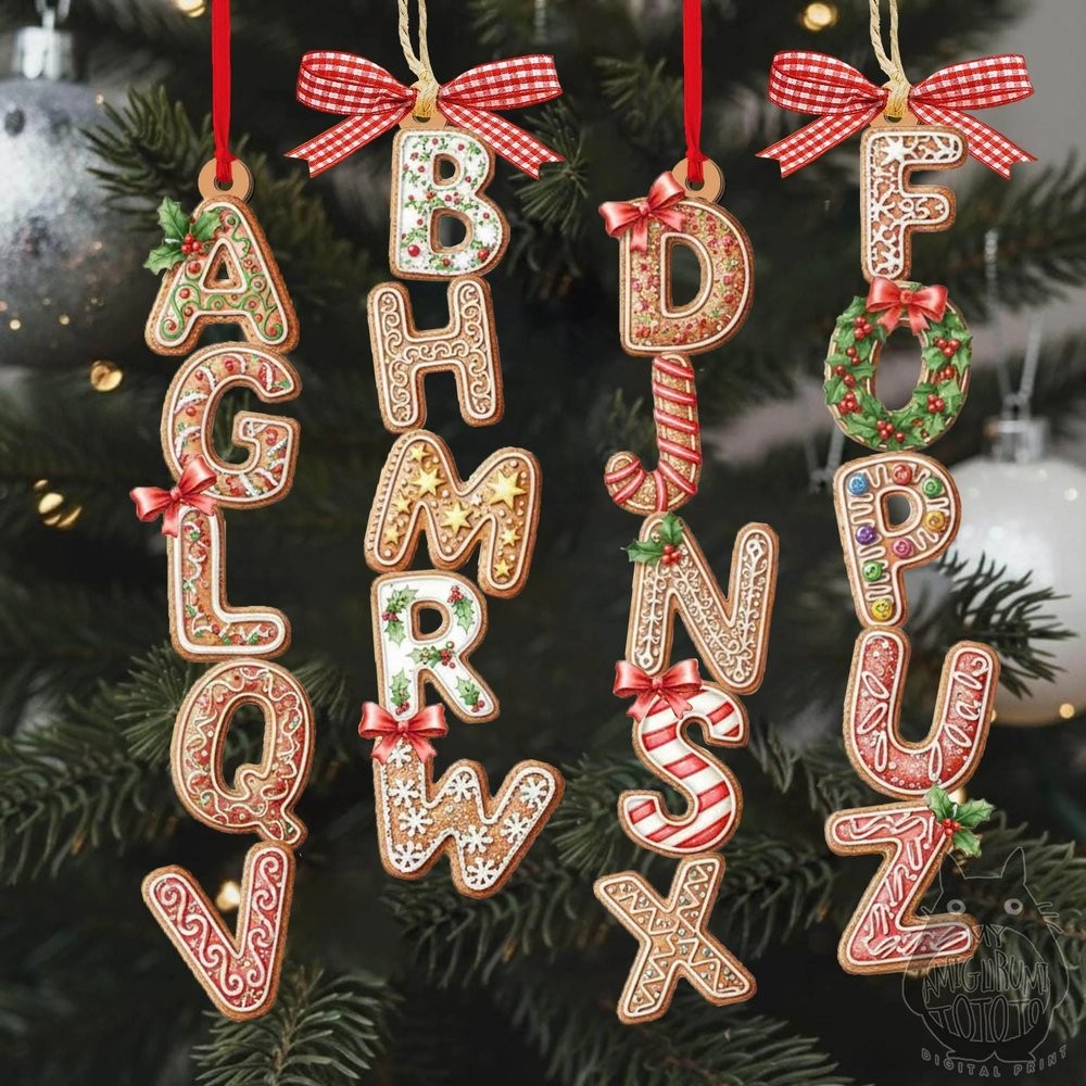 Personalized Gingerbread Alphabet Ornament Kids Name Ornament Christmas Tag for Stockings