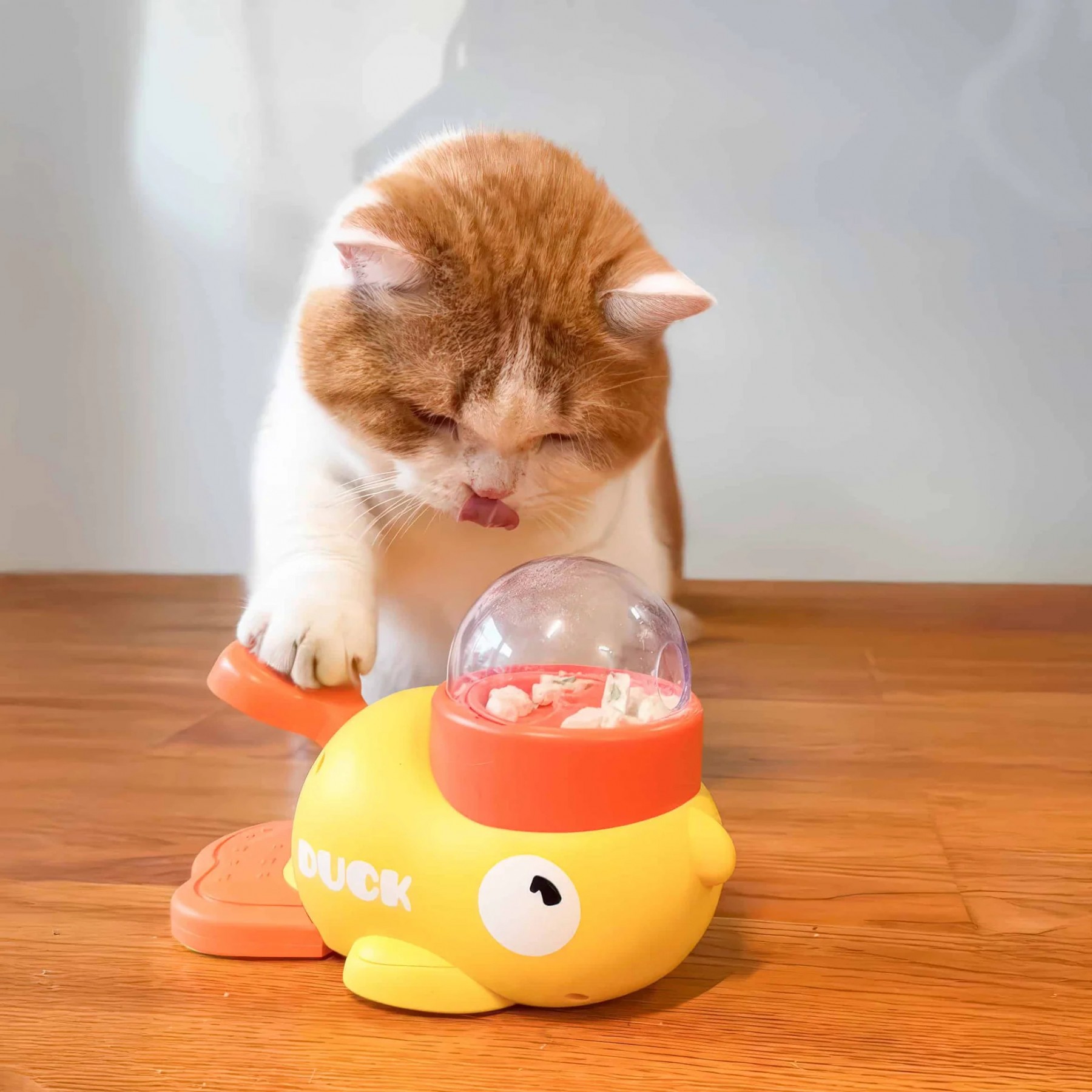 With a charming duck design available in sunny yellow and clean white, this toy catches your cat's eye instantly. Its playful appearance makes mealtime feel like playtime.