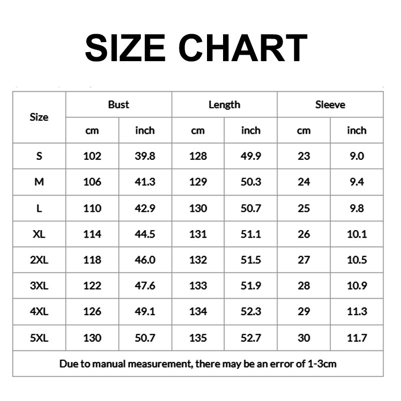 NOTE: If you are not sure, please choose a larger size. If you have any doubts about this product, we suggest you contact our customer service team. Due to the color difference between the screens of different electronic devices (computers, mobile phones or ipads), especially the CRT screen and the LCD screen, the color of the item may be slightly different from what you see in the photos, please take the actual product as the standard.